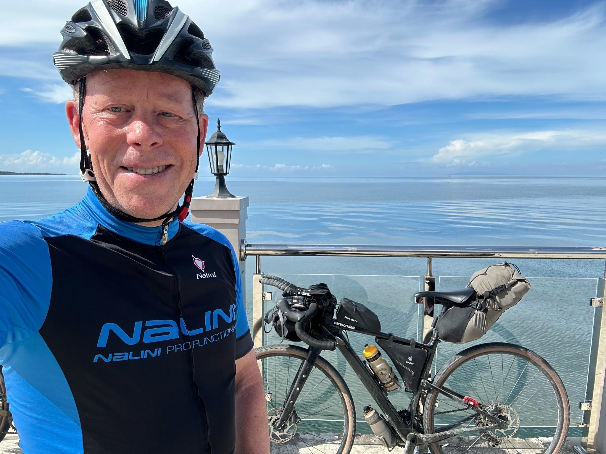 Since the Spaniards drive very carefully and overtake cyclists at a reasonable distance, it is not a problem to drive over the bridge, which has no cycle lane (or sidewalk to push the bike on).
