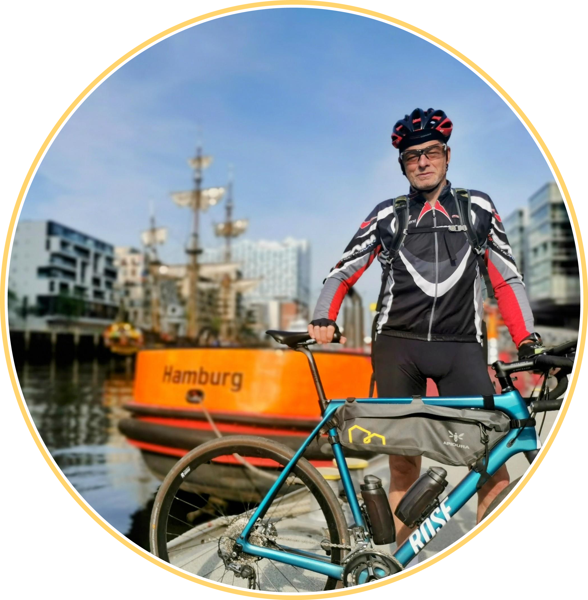 You can quickly cycle around the Pfaffenteich, but you'll be sharing the path with pedestrians. It's quite easy to get along. Where you enter the pedestrian zone, there's outdoor dining with a view of the fountain—nice 😉