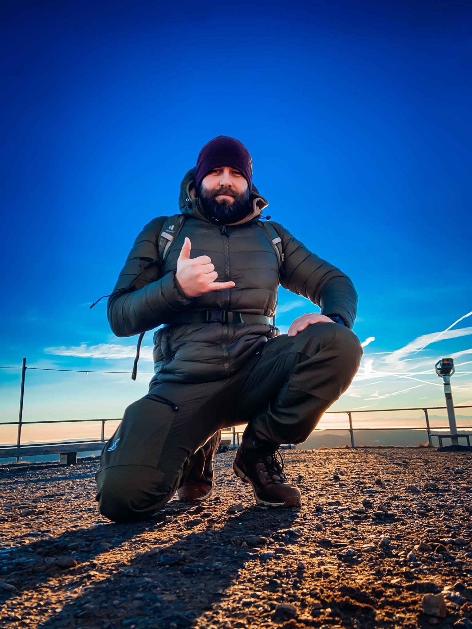 The two wooden figures have a roof over their heads, but are lightly covered with snow. At the top it is quite windy and fresh.