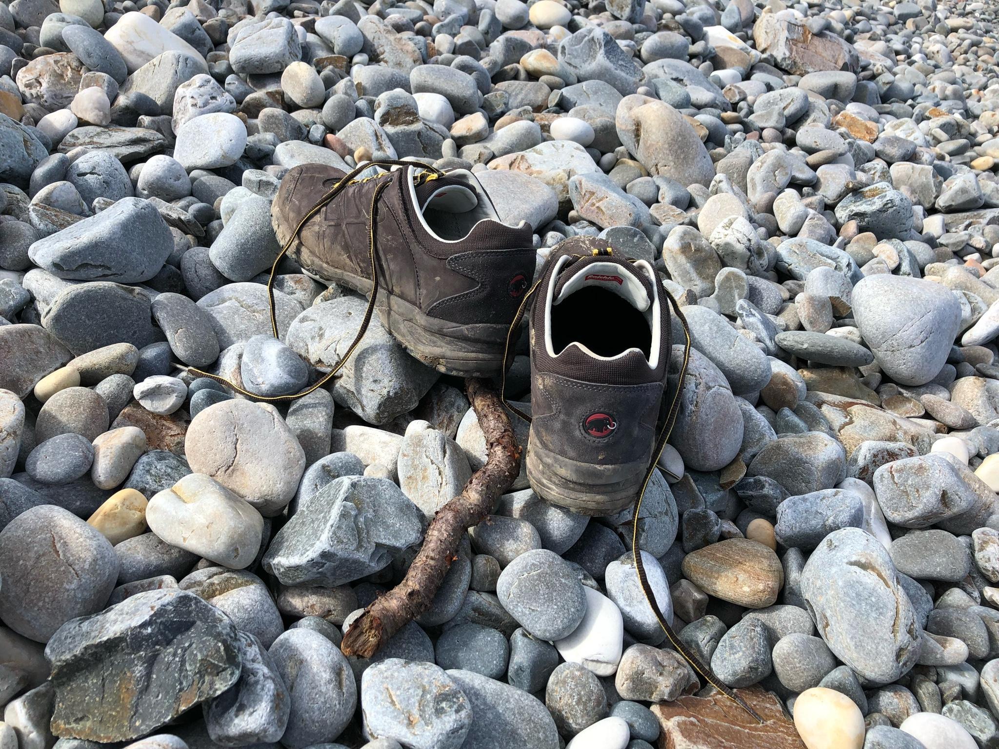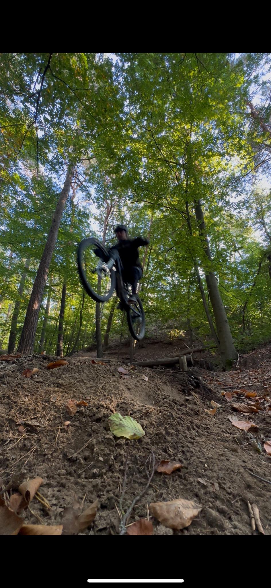 It's probably a mountain bike trail in the forest, where we hiked a long way today, mostly uphill. We were amazed by the steep paths and the ramps that the daredevils probably ride down.