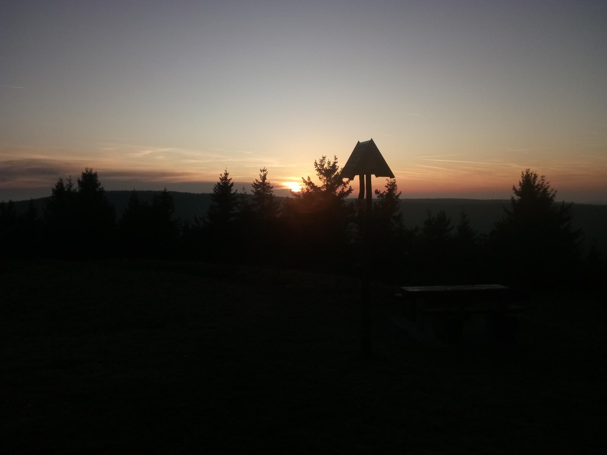 Next to the stone marker, which is located directly next to the cycle path on the old railway line, there is also a rest area.