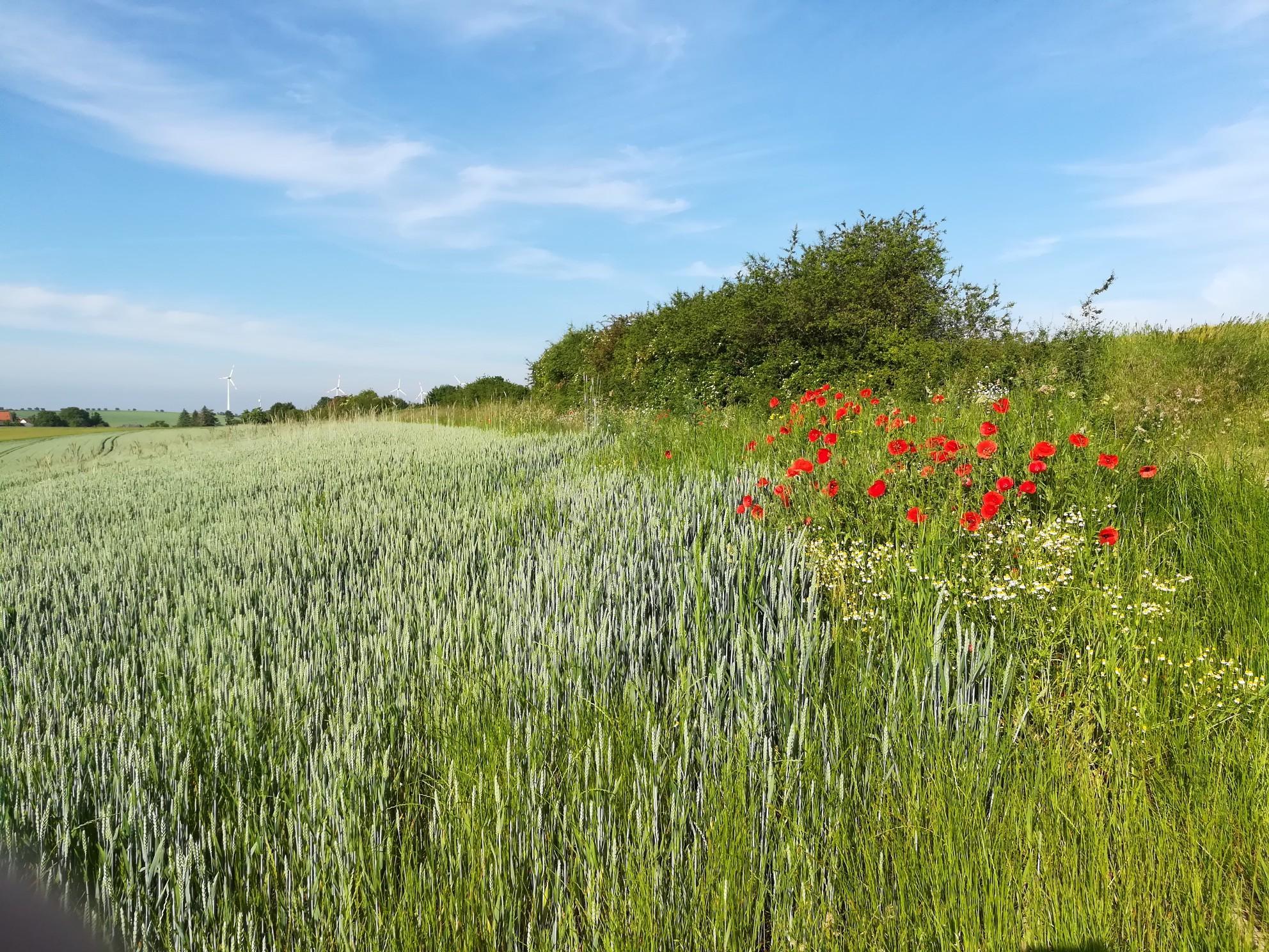 From here, a wonderful path along the meadows over a stream past a picnic bench. Wonderful 🥰