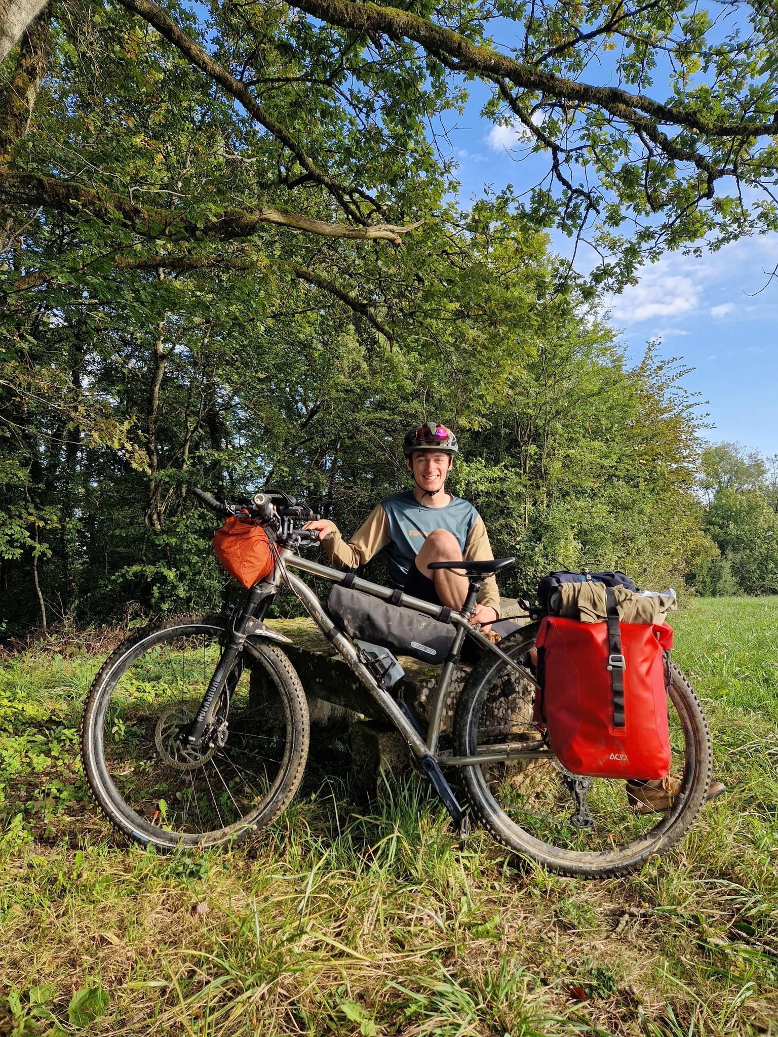 just with a semi-rigid mountain bike, a full suspension would be a plus or manage the tire pressure, very hot at 35 degrees, well taken enough to water yourself