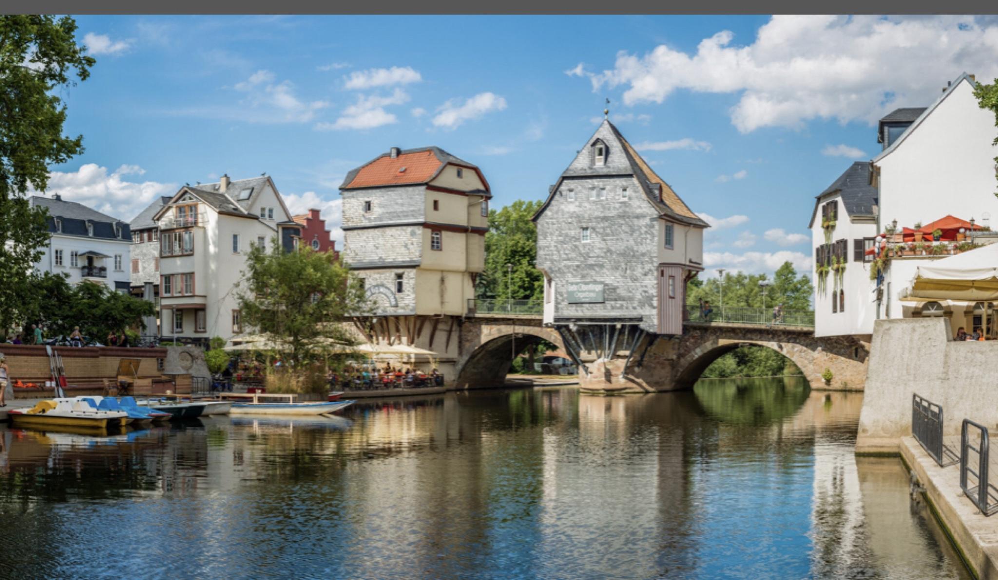 The view from the Lühe dike over the rows of blossoming trees, the houses nestled against the dike, the magnificent facades, the drawbridges and the swing bridge - everything is like in a fairy tale book