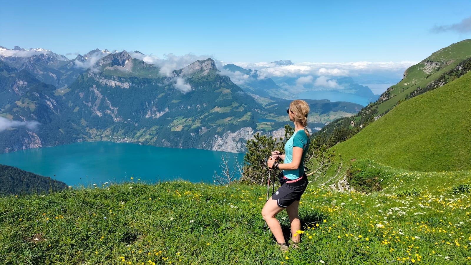 The Lauterbrunnen Valley is wonderful to explore on foot or by bike, Lauterbrunnen itself is very crowded, far too touristy. I heard that the locals don't like it anymore either. So I tried to avoid it as much as possible. There are enough hiking options with or without a cable car. There is something for every level. I hiked the Mountain View Trail in mid-June, it was simply beautiful with the blooming alpine meadows, highly recommended.