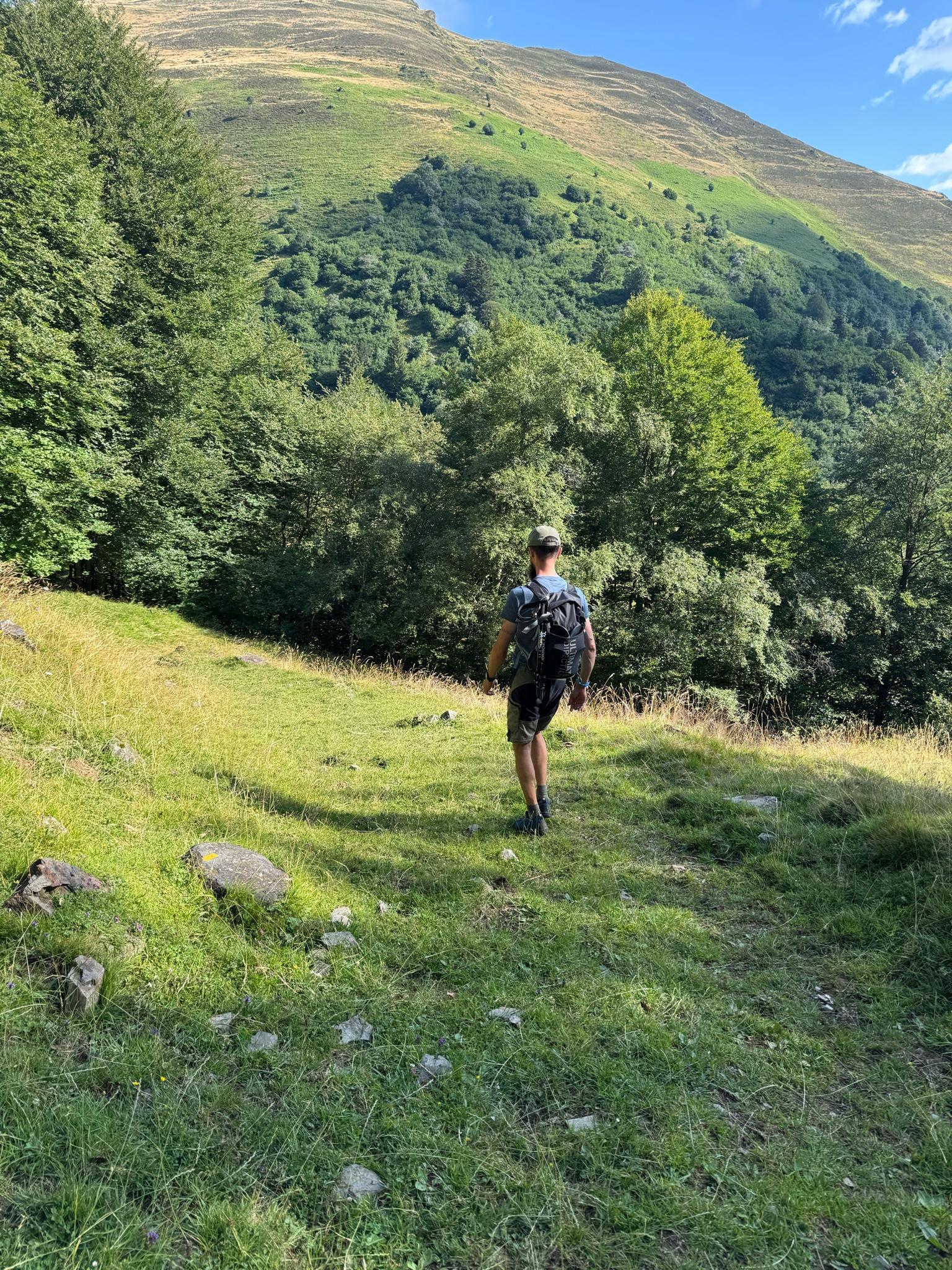 Two trees lying on the steep part of the dirt road. Voluntarily left there by the municipality so as not to have motorbikes. Following the steep part it is a single in the middle of the nettles.