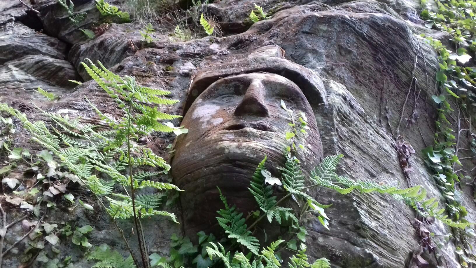 Vista is one of ten stone artwork pieces commissioned to celebrate the millennium. They are located along the length of the Eden from its source near Mallerstang to its union with the Solway at Rockcliffe. Vista shows carvings of boots, clothing and a backpack symbolic of a scene where someone has stripped off for a dip in the Eden. Easily found on the forest path through Coombes Wood.