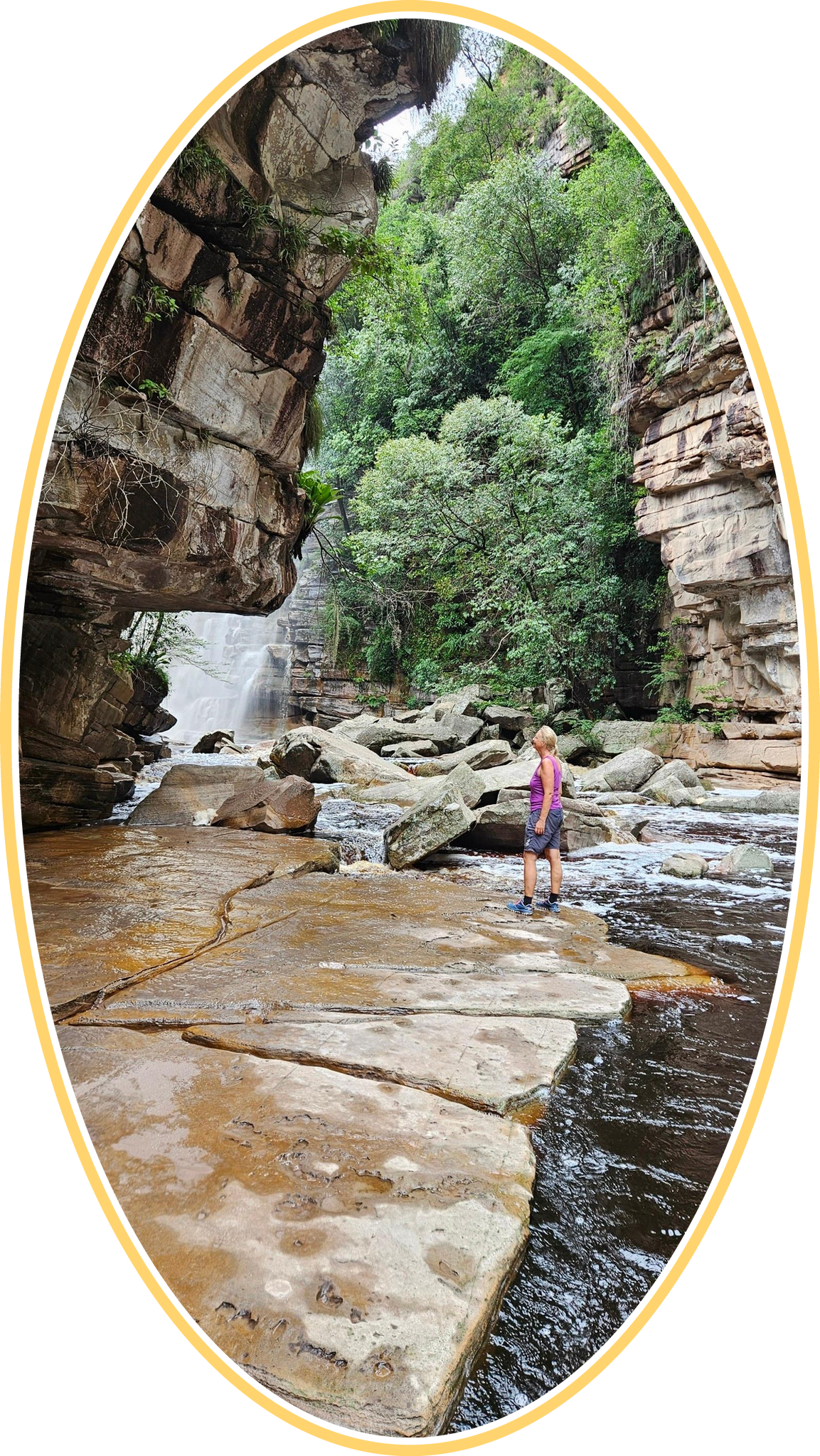You have to be able to balance well to get over it. But otherwise, if you have waterproof, ankle-high shoes, you can take the direct route through. (At least it worked for me.)
