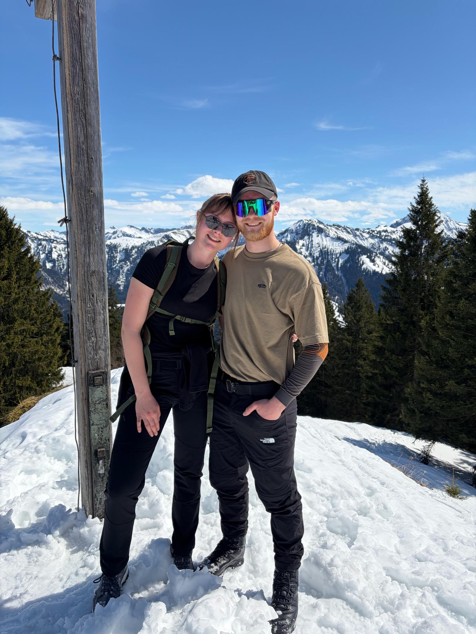 a summit cross with summit book, a small seat board but only offers space for max. 2 people on the small summit