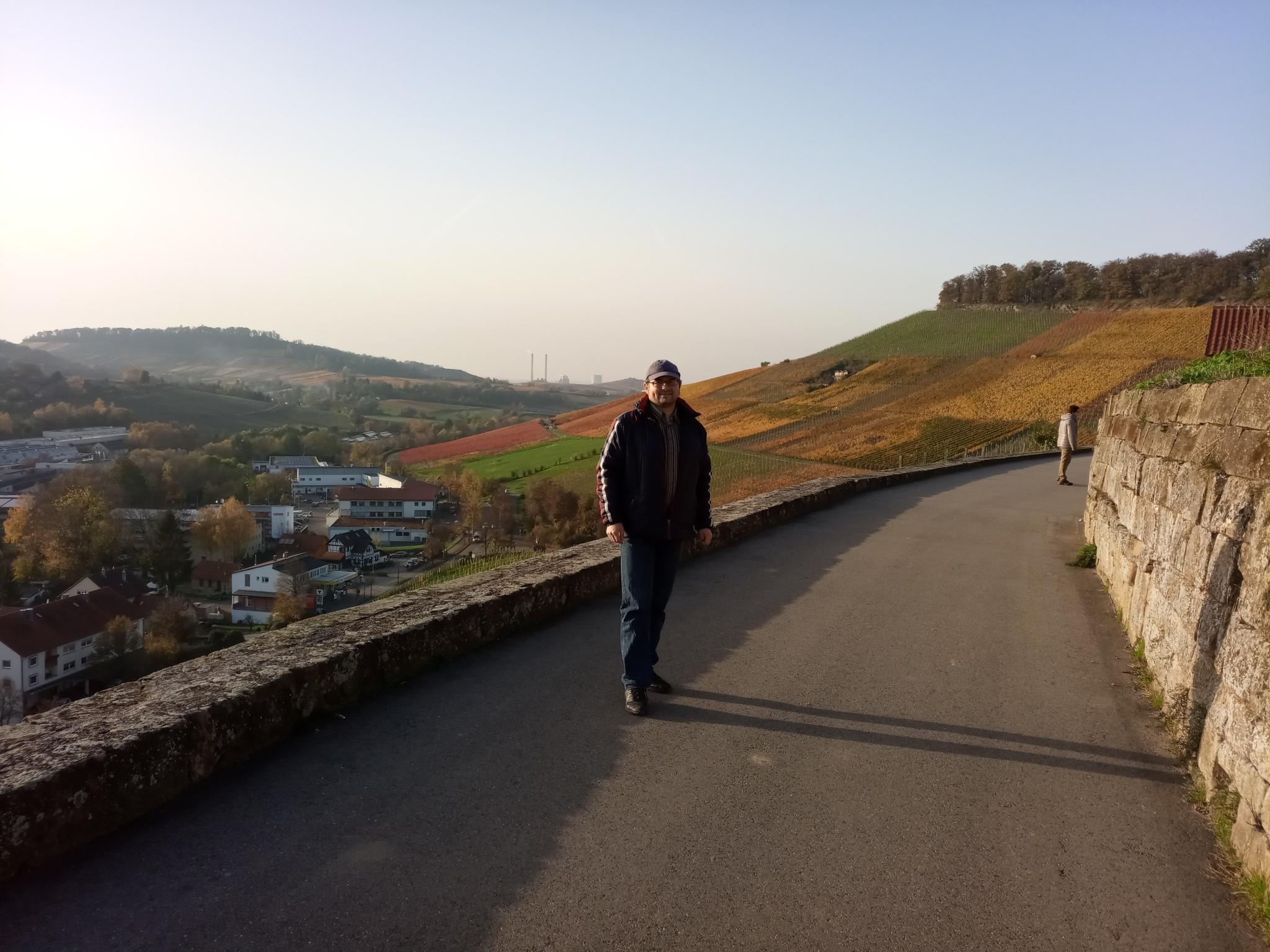 This viewing platform is simply ingenious: it offers a view in all directions to the horizon over the vineyards, which shine beautifully in the autumn sun.