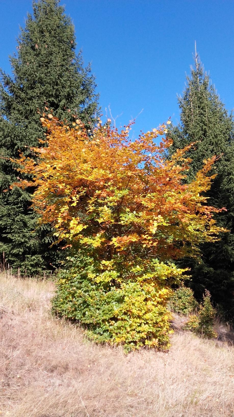 The tree is still in the place where it belongs. In a beautiful beech forest. With small wooden benches all around. Beautiful, quiet hiking trails.