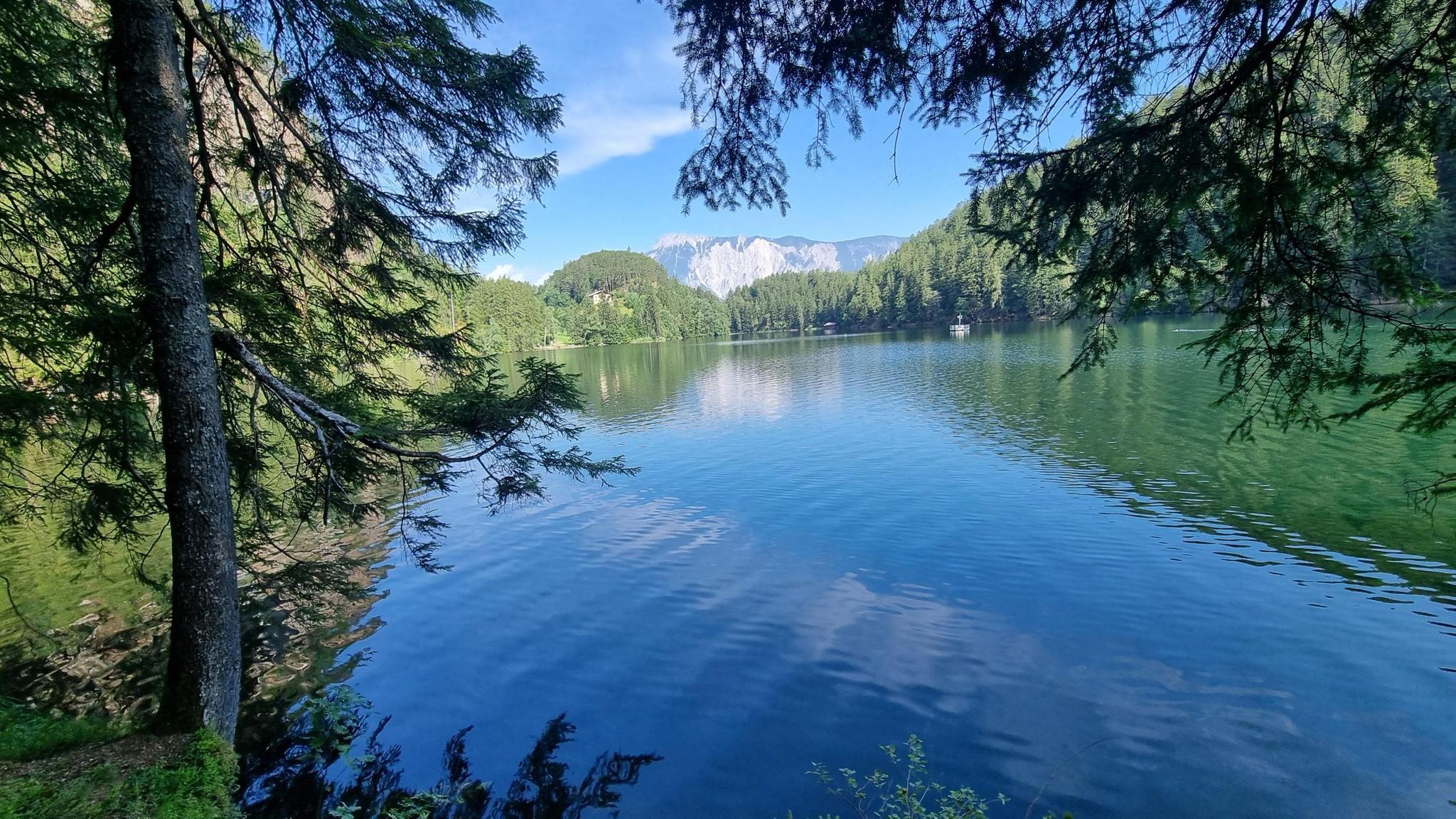 The circular route around the Elbsee is varied and offers great views of the Alps here and there.