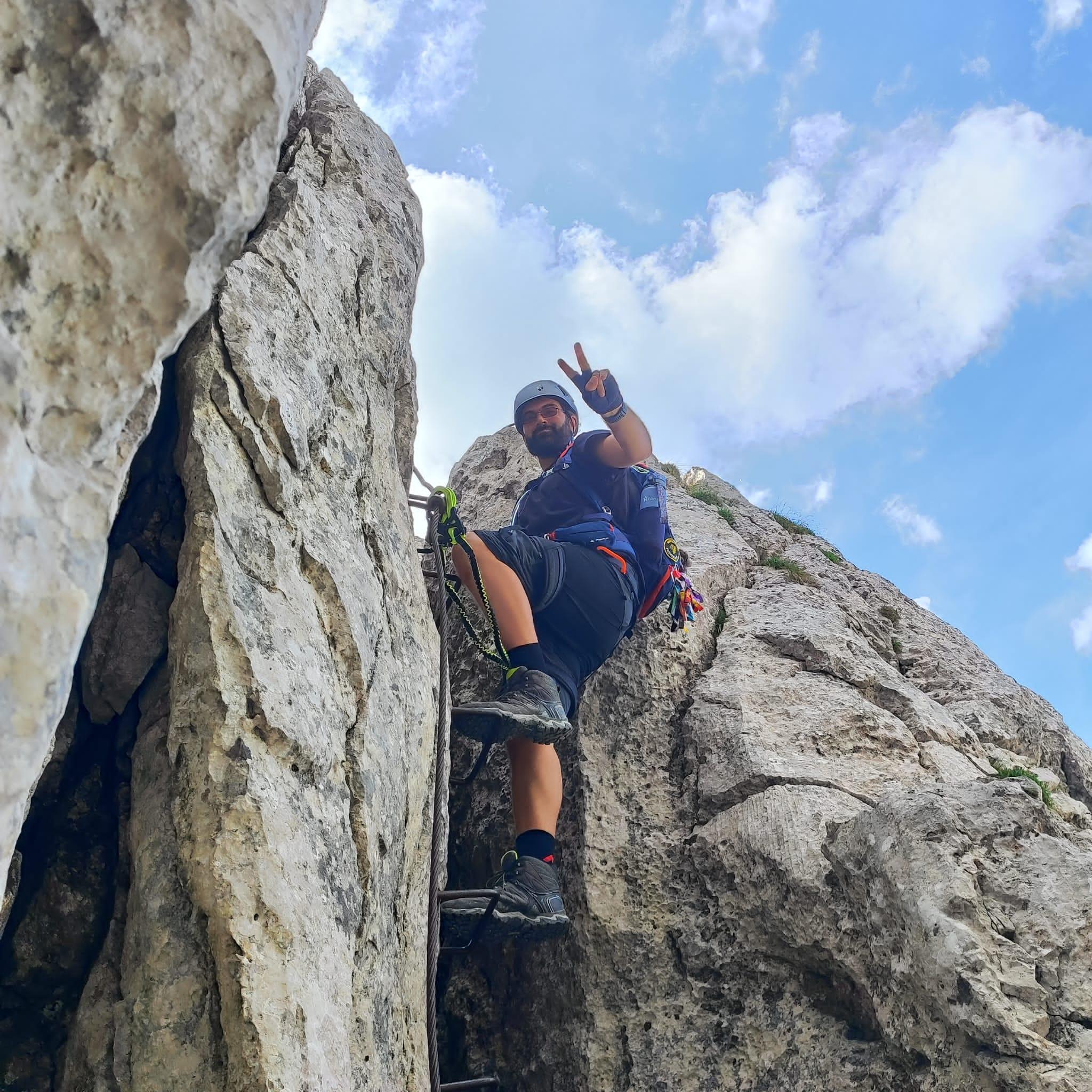 Above the "cave of the elves" are these 3 tree trunks cut into loungers, on which you can rest a little after the strenuous climb.