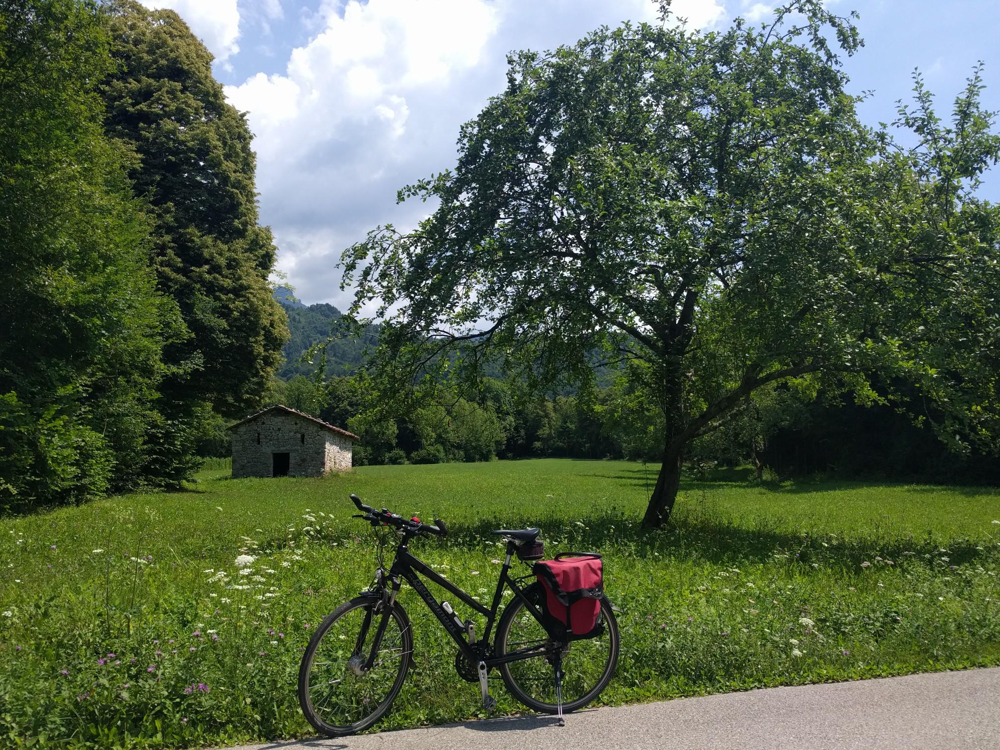 Here you can balance across the canal over an old thick and wide tree trunk and walk or bike directly along the lake on the dam in between.