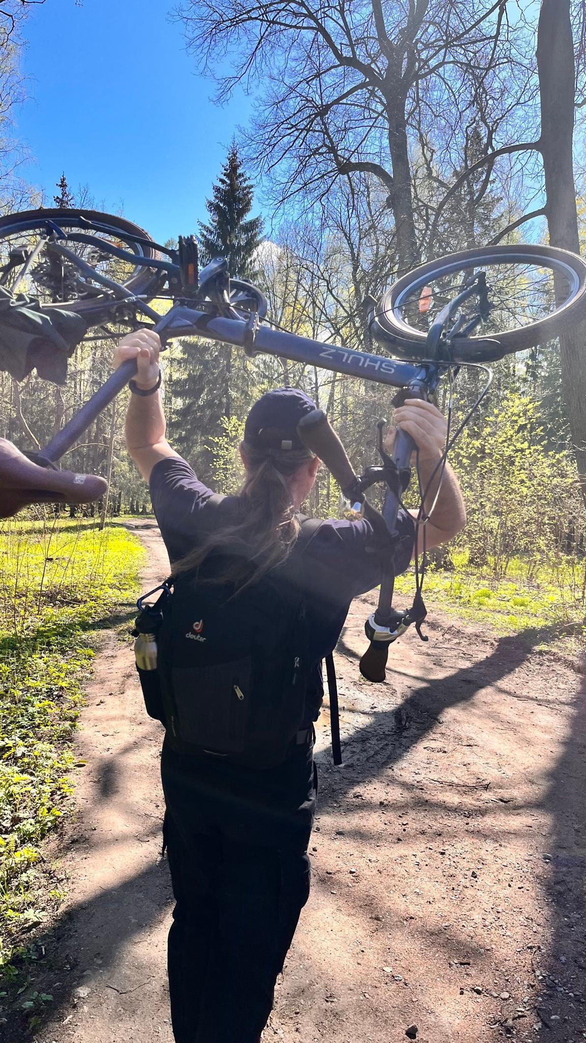 Beautiful location and easily accessible by bike. But if you want to walk further along the trails, then only on foot.