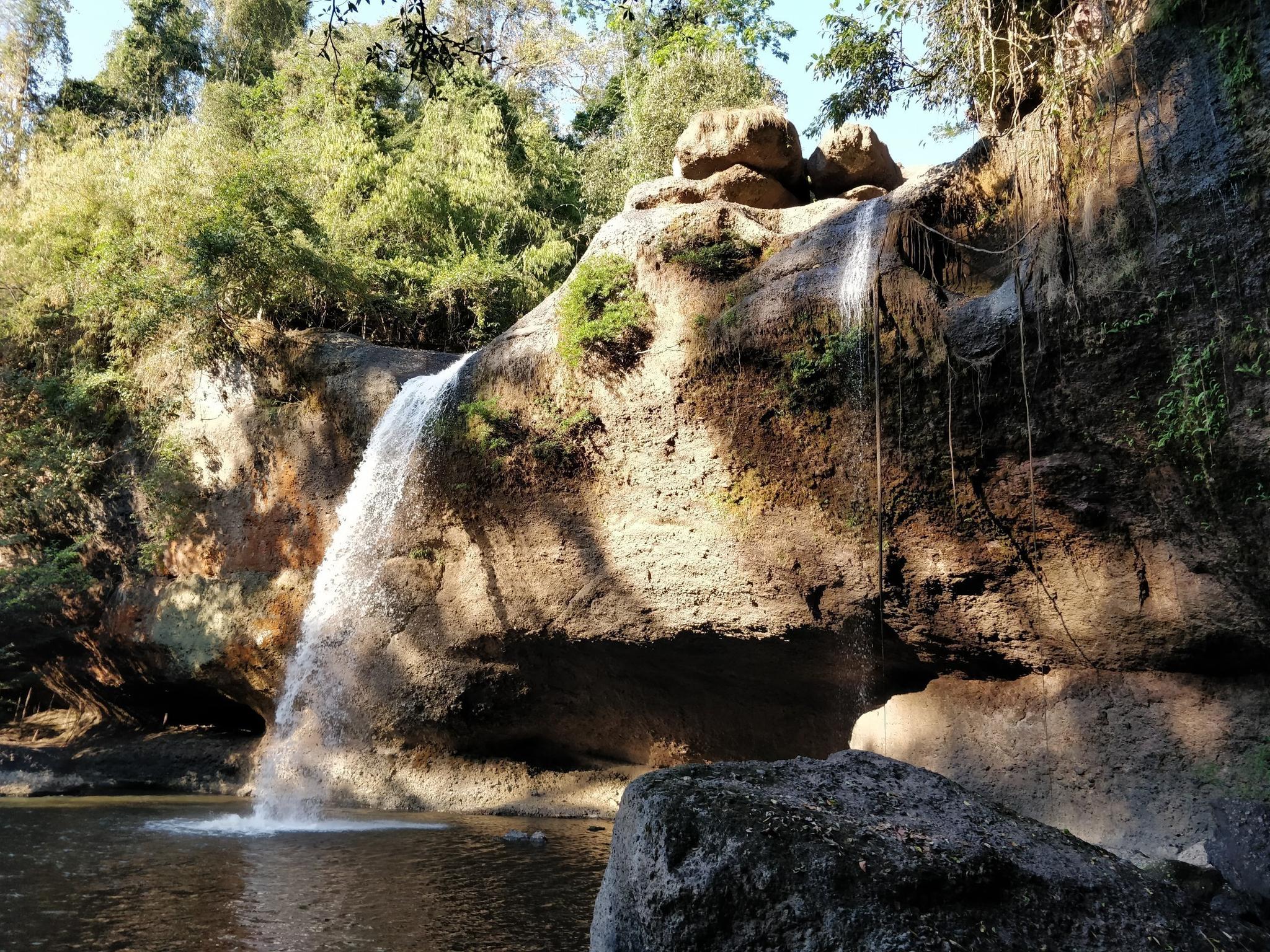The cave is in the forest on a small hill. There are stairs down that we couldn't climb as a rappelling course was going on. It's definitely worth looking down.