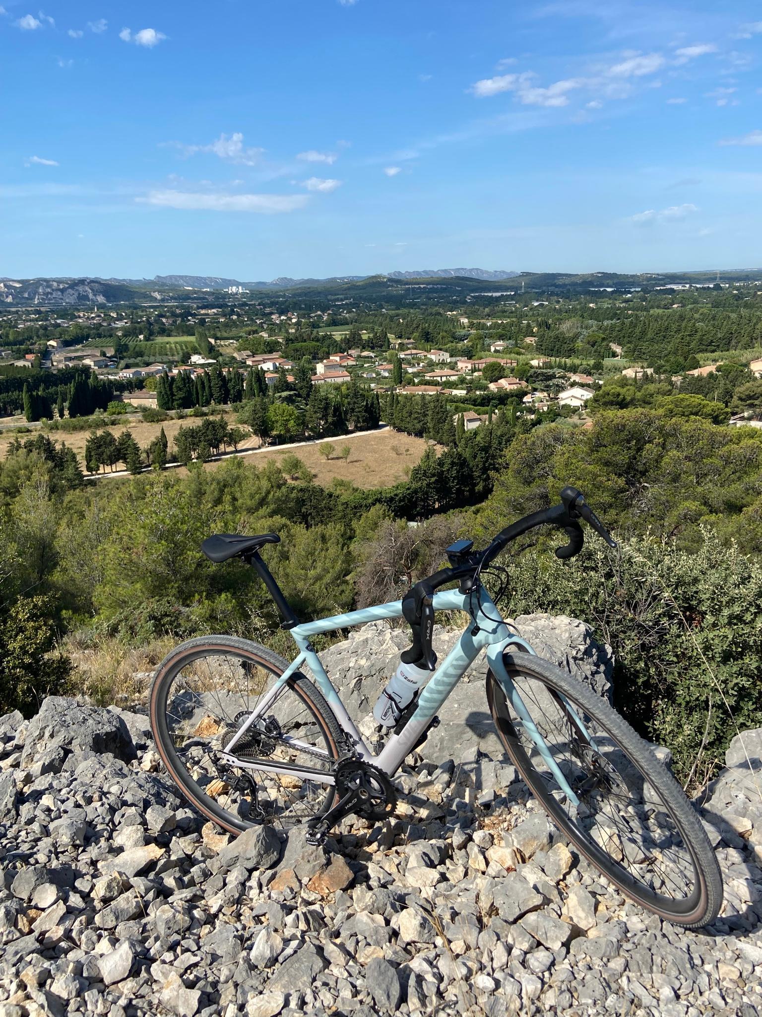 The Lac du Salagou takes you into another world. Embedded by round hills and vineyards, the lake is relatively central in the Hérault department. The red earth always reminds me a little of Australia. It also creates great contrasts between the lake, the green vegetation and the blue sky. You can do great tours around the lake. With the touring bike it gets a bit impassable in some places, but you can reach cozy little bays where you can be all to yourself. Here and there messages appear along the way, which were laid out with small white stones on the red background. If you want, you can also leave a little message yourself. The white stones are mostly found on the roadside.