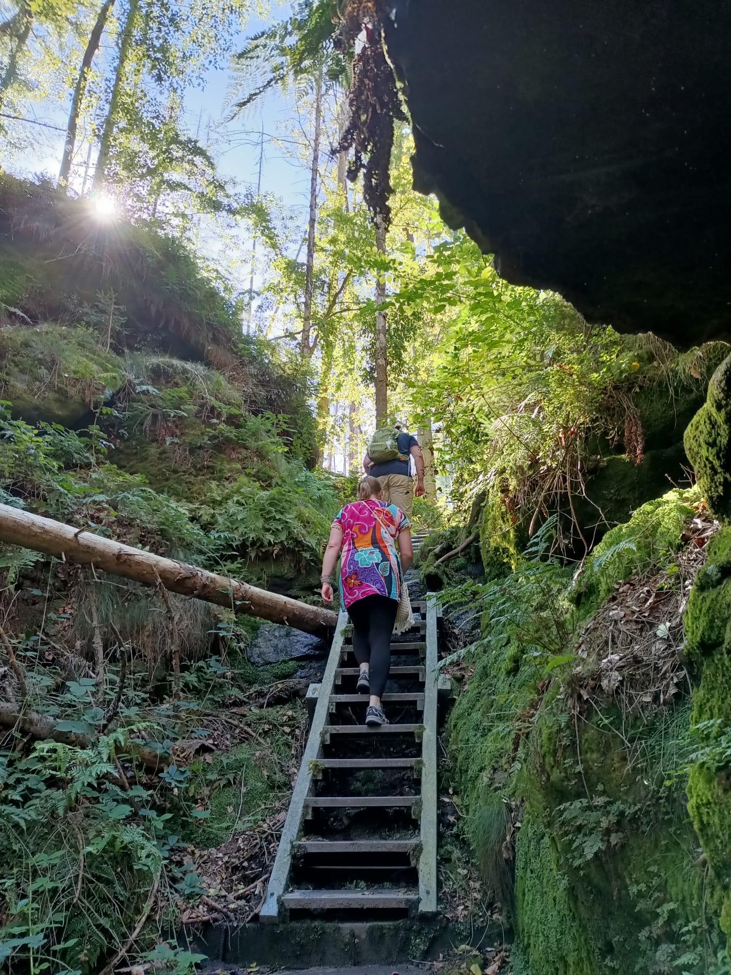 A small climb in the forest, but the surroundings are beautiful. There is also a modern training element on the fitness trail.