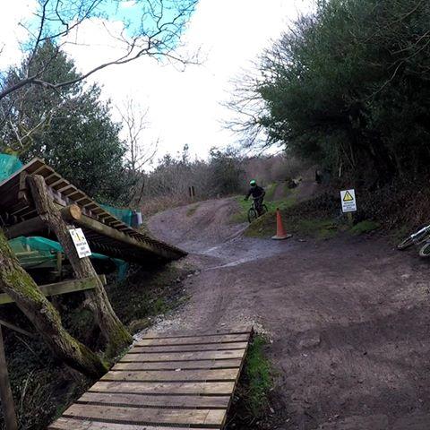 enter fixby woods by the nisa store. On entering woods take the right route across the top of the wood. trail will open up right. point your front wheel in this direction and enjoy the features. there's a small table into a left hand berm that leads you into big kicker style jump. On landing take a left or right right will lead you to a step down into a gap jump and another sender. left leads you down loads of flowey craters known as the 7 humps
