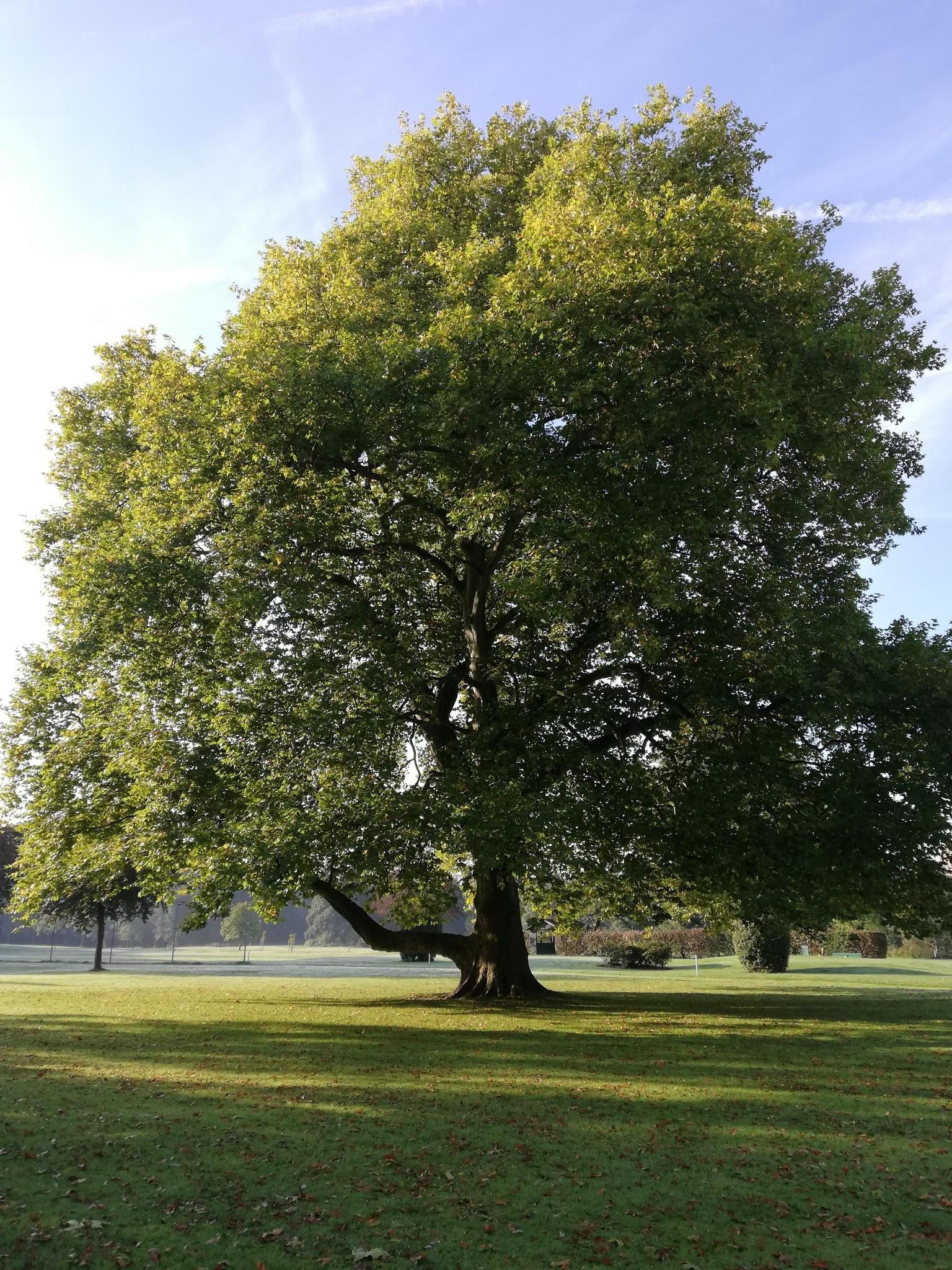 Beautiful green, light-filled forest with many small slopes.