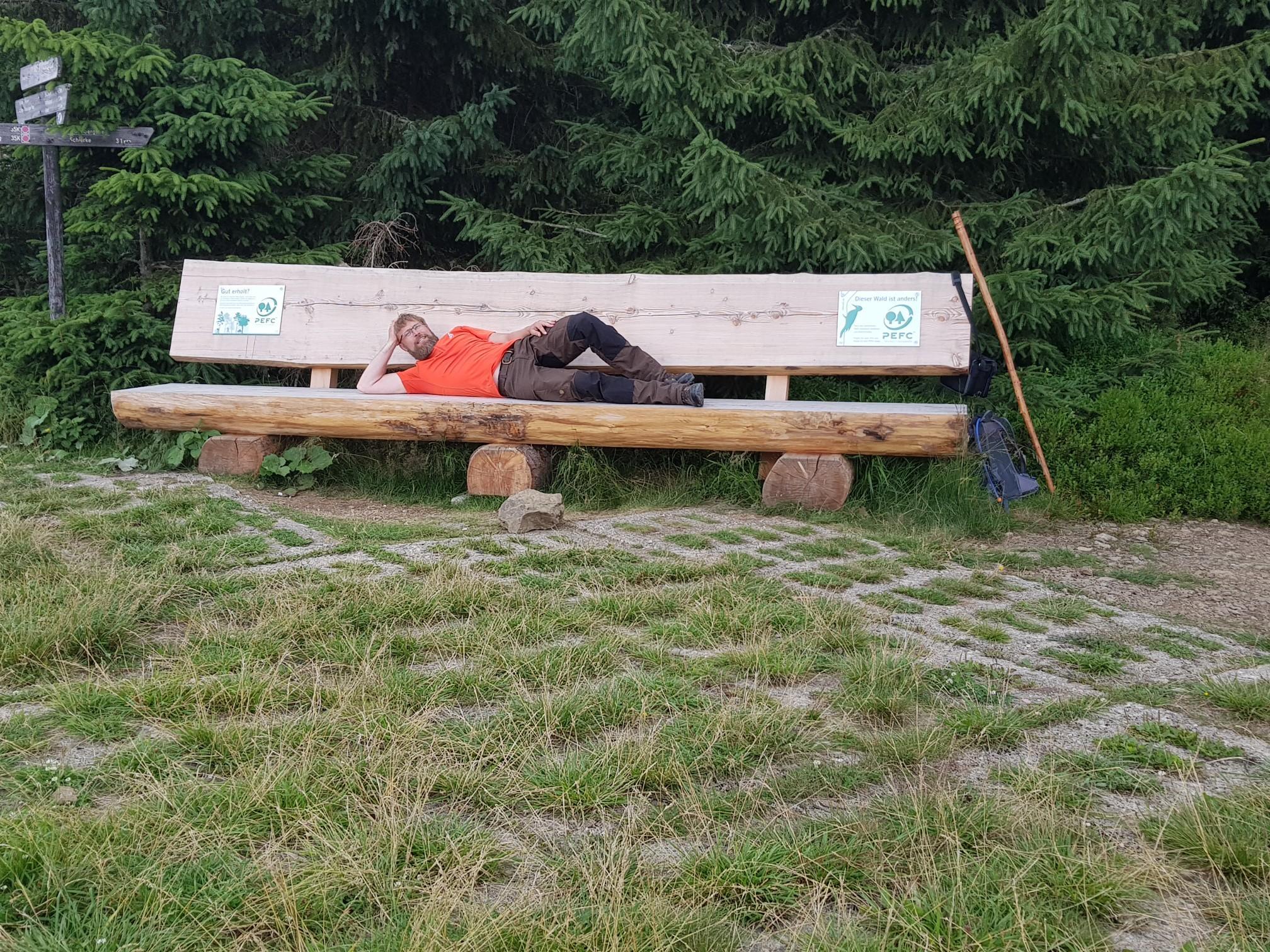 beautiful summit marking with stone tower Picnic bench available