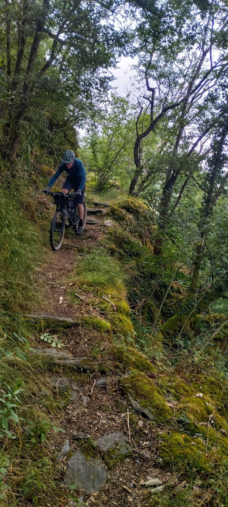 This is better to climb than to descend, because it is very technical. The best thing to do with the MTB, although I also came up with a cross country bike with 33 mm tires. I wouldn't be able to go down with the cyclocrosser, I think. Very rocky and uneven, with stones ranging from small to coarse.
