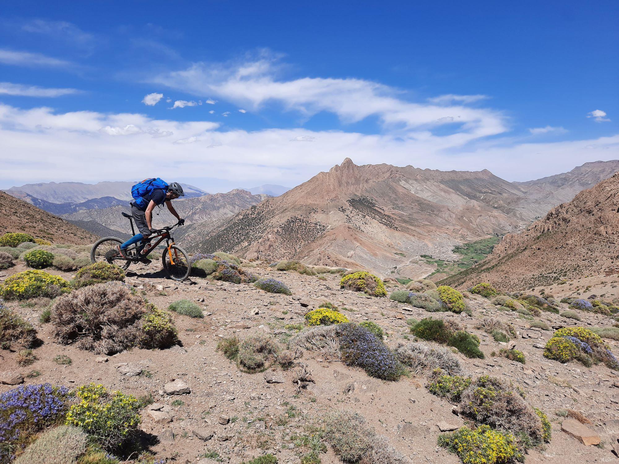 Starting point of our 7 days "Wild West" round tour through the Atlas around the Tishka Plateau. Easy rolling through the hills and flowering fields and spectacular views on the snow-covered High Atlas. More Information on accommodation, cultural background and a full logbook on: www.atlasmountaintrails.com.