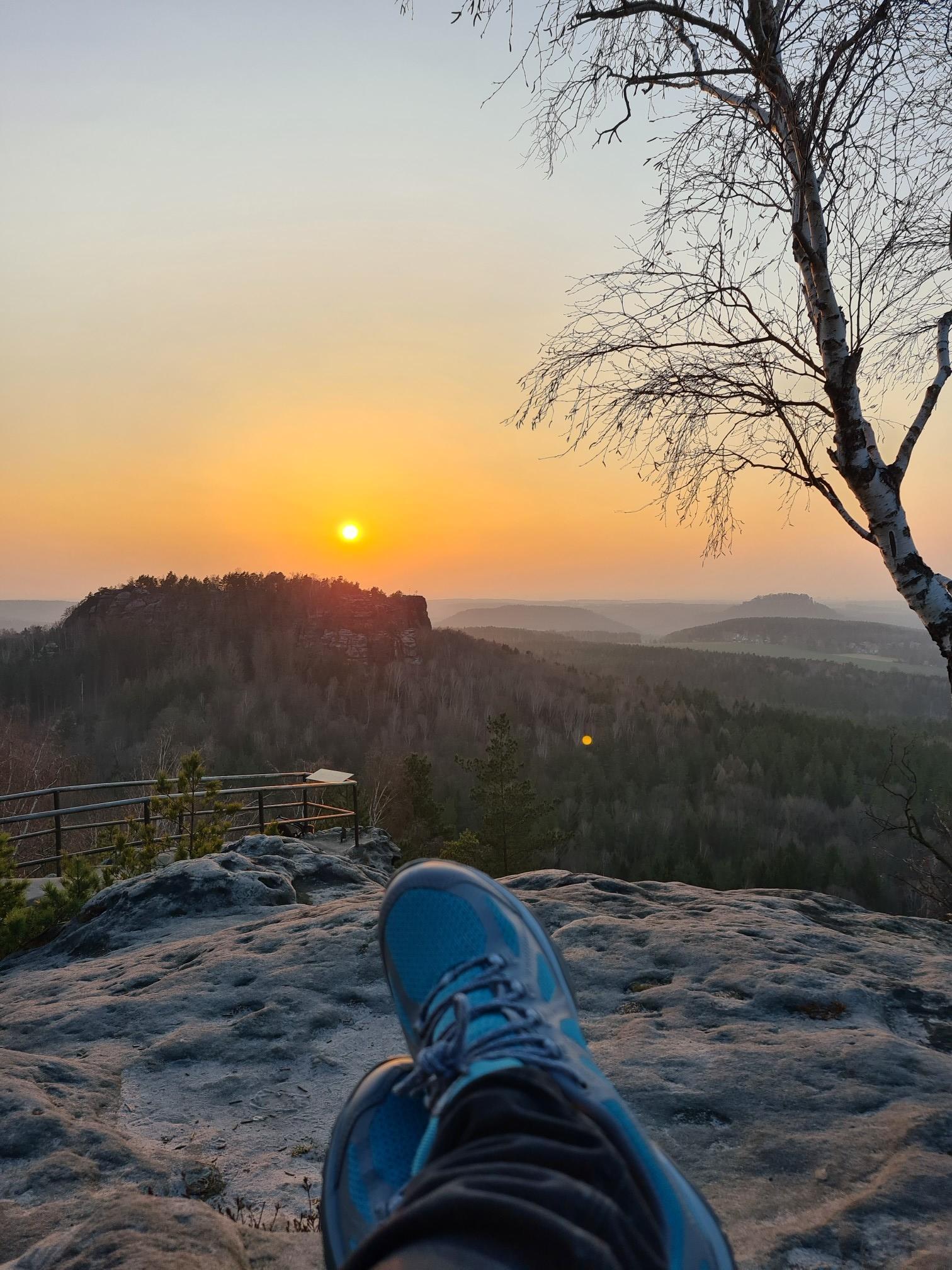 We started the walk there because easy parking and beautiful view. You start that with a somewhat more difficult descent via loose stones but after this half hour the rest of the walk is via a driven sand road.