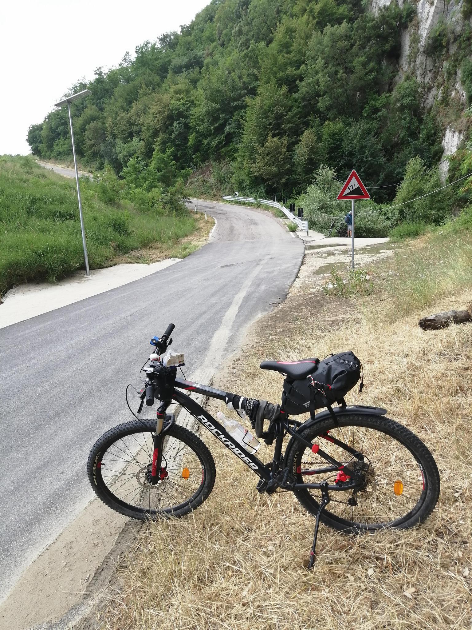 secondary road with little traffic... it's a succession of double-digit walls and false slopes uphill... if you are tired, dehydrated and with a generous tire halfway up the climb you divert towards the Laorno brewery 😉