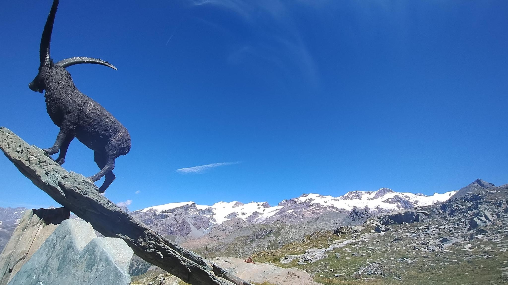 Colle that you meet going up from Barmasc towards the classic excursion to Zerbion. We are at an altitude of 2410 m and the steepest section ends here. Turning your gaze to the left, the statue of the Madonna placed on top of the Zerbion is already visible