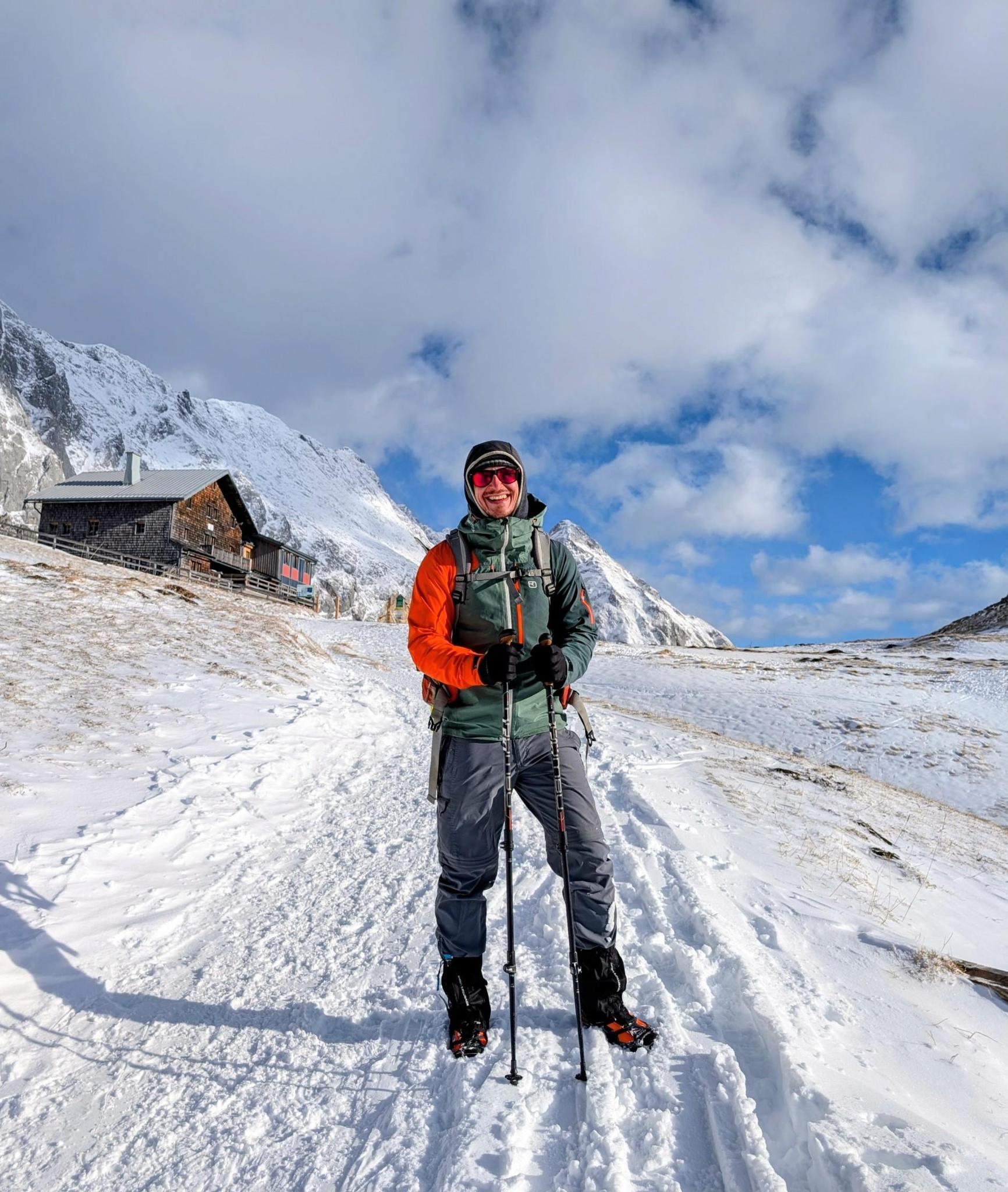 The very beautiful mountain lake directly behind the Coldaihütte usually glows turquoise green. It invites you to linger, there are meadows and places to take a break everywhere. Some people also dare to go into the cold water to keep the fish company.