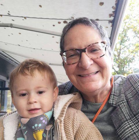 The bower features a patchwork of green and purple.