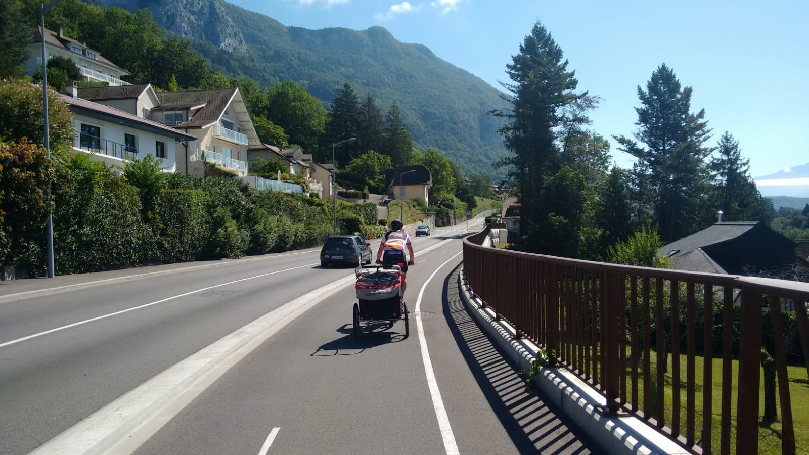 Good to cycle, few loose stones. Best way to get to the village
